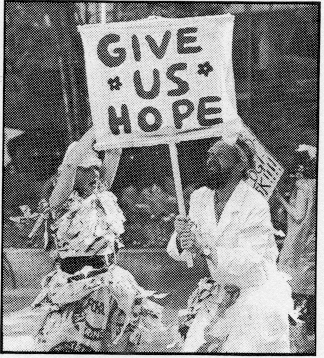 However, our over-crowded world of media claim and counterclaim, leaves us little room to move. People know too much. The facts are numbing, and our well ofhope has often run dry. Feelings of helplessness impede our capacity for rational thought. To re-open this connection we turn to the communication techniques of popular theatre.